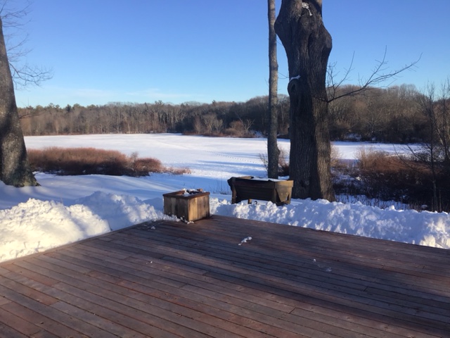 Instead, we made our way cross-country to Bridgewater. The roads were dry and clear. The sky was blue. The fields were white with the fresh snow.